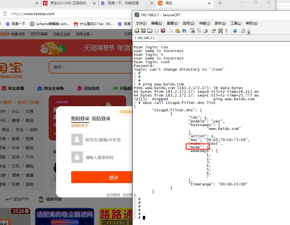 ubus命令添加DNS过滤成功,使用对应mac的STA设备浏览非设置网址未限制。