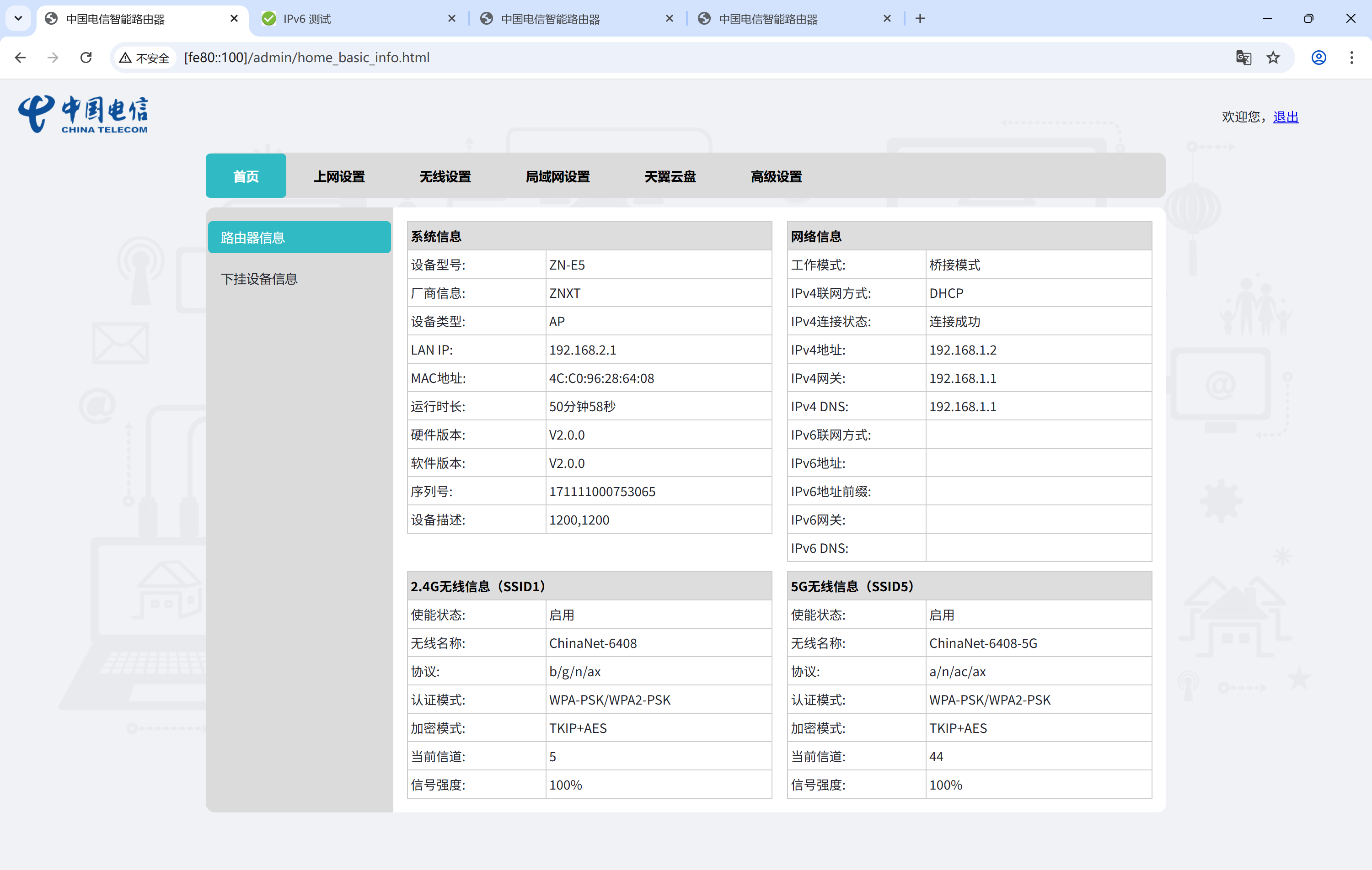 2、查看路由器ipv6地址
