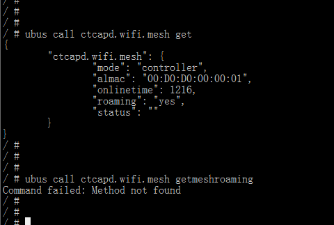 / # ubus call ctcapd.wifi.mesh getmeshroaming